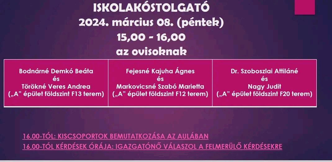 Ezen a héten is szeretettel várjuk az óvodásokat! Kérésünk, hogy a nagy létszám miatt egy óvodás kisgyermek csak egy felnőtt kísérővel érkezzen pénteken! Köszönjük!